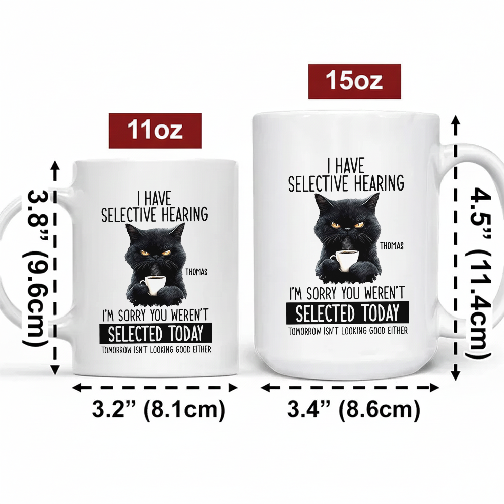 Custom Funny Coffee Mug, I Have Selective Hearing You Werent Selected Cat, Fun Gifts For Coworkers, Friends, Family, Gift for Animal Lovers